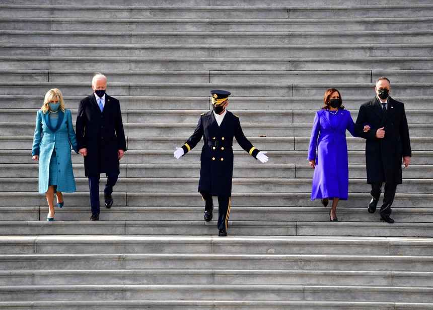 Vợ chồng ông Biden và gia đình Phó tổng thống Harris rời khu vực lễ đài sau buổi tuyên thệ nhậm chức.
