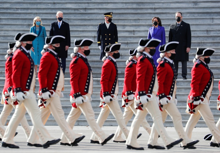 Tiếp nối lịch trình dày đặc, ông Biden duyệt binh ở khu phía đông trụ sở quốc hội. Các quân chủng của lực lượng vũ trang Mỹ đều có mặt tại sự kiện này.