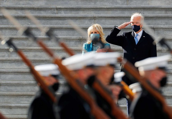 Trong một sự kiện khác theo thông lệ, ông Biden - tổng tư lệnh mới của đất nước - đã xem xét sự sẵn sàng của quân đội từ Điện Capitol, mà tân Tổng thống Mỹ Joe Biden nắm tay những người thân trong gia đình bước tới những dãy nhà cuối cùng của Nhà Trắng, tất cả đều đeo khẩu trang.