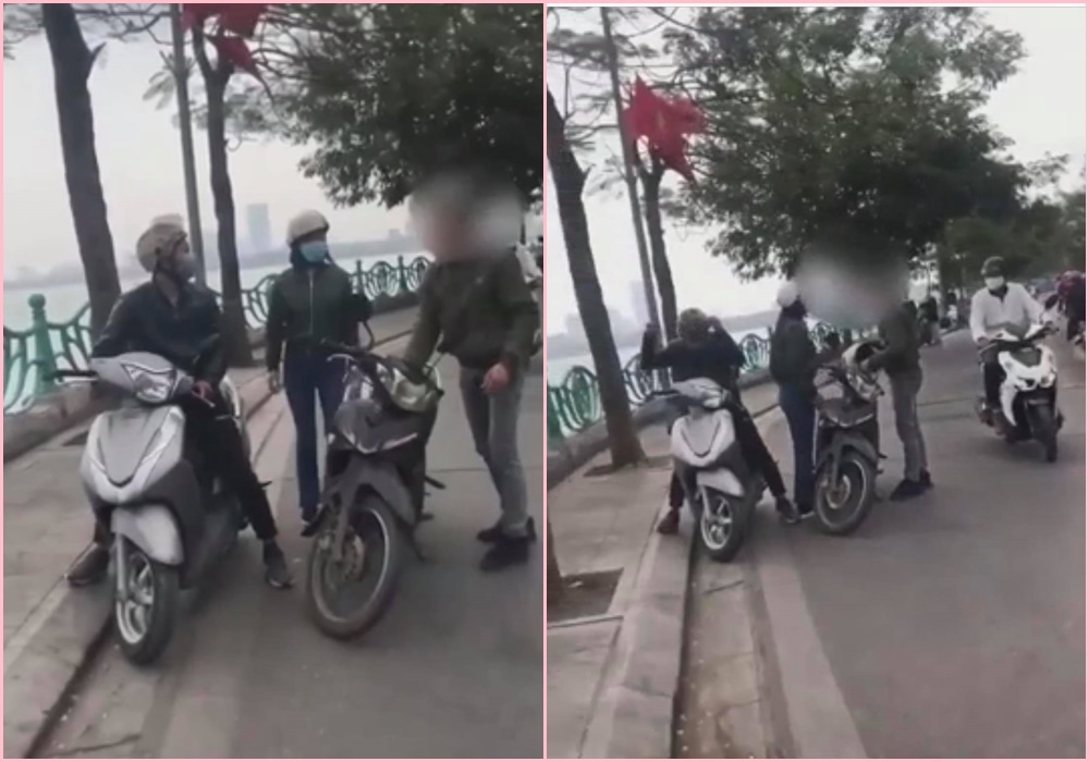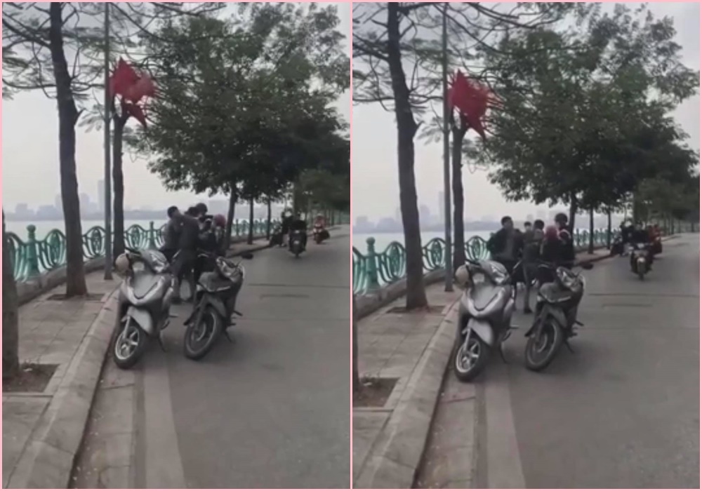 Theo đó, đoạn clip được chia sẻ trên mạng xã hội đã ghi lại vụ ẩu đả xảy ra trên khu vực Hồ Tây (Hà Nội). Cụ thể, một người đàn ông đã bắt gặp kẻ lạ mặt chở theo vợ mình trên phố, liền lao lên chặn xe chửi bới và lớn tiếng mắng mỏ.