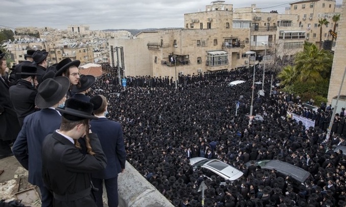 Hàng nghìn người Israel theo nhánh bảo thủ của đạo Do Thái ngày 31/1 dự đám tang một giáo sĩ nổi tiếng ở Jerusalem, phớt lờ quy định cấm tụ tập giữa Covid-19.