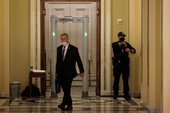 Máy dò kim loại được lắp đặt ở lối vào phòng họp Hạ viện. Ảnh: Reuters.