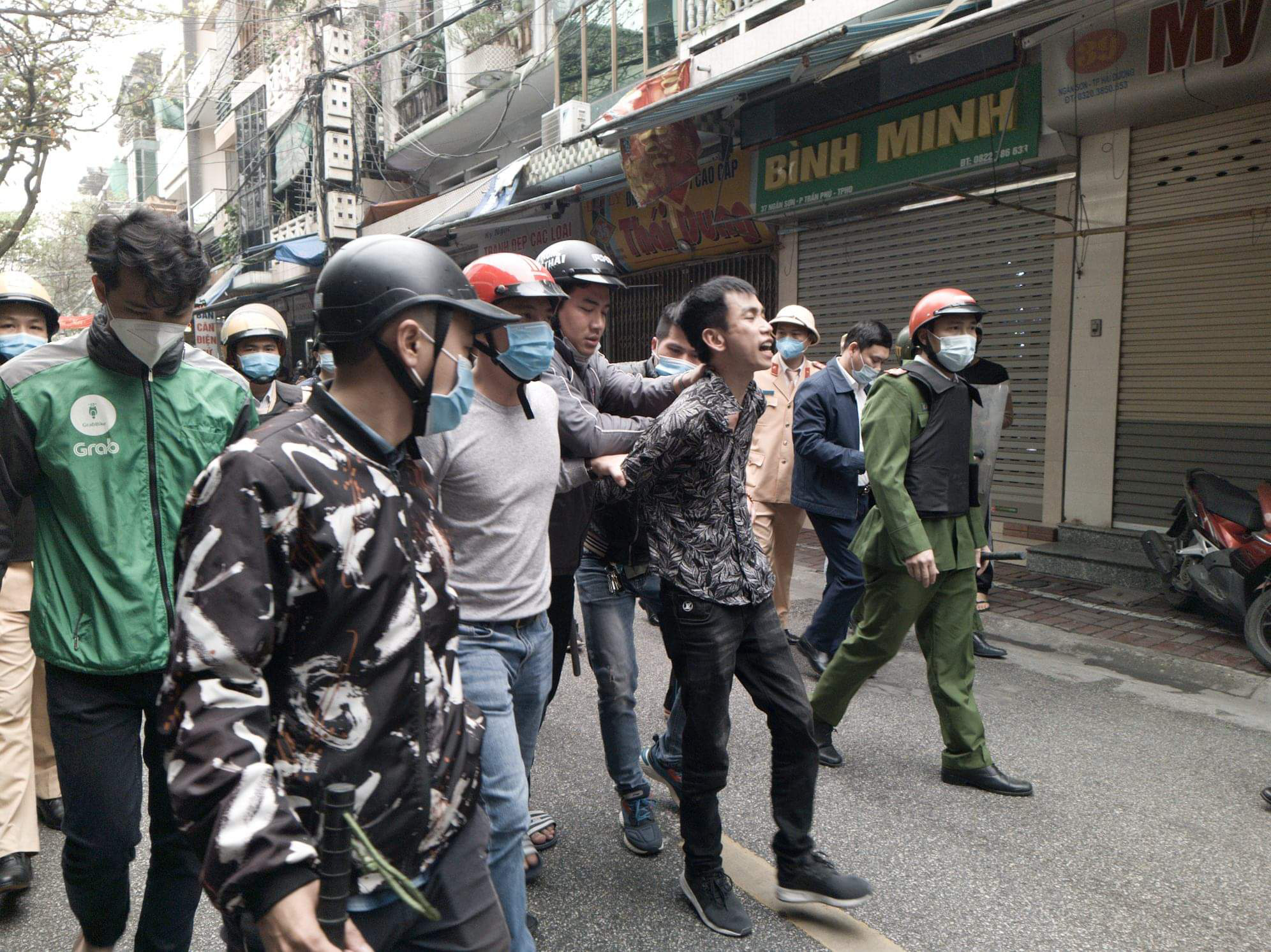 Nguyễn Trung Hiếu bị lực lượng công an TP.Hải Dương khống chế tại hiện trường.