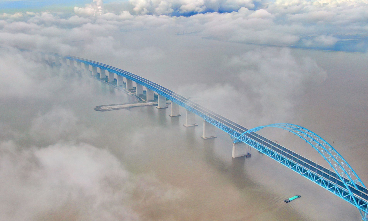 Cây cầu bắc qua sông Dương Tử dài hơn 11 km nối liền Thượng Hải và tỉnh Giang Tô. Ảnh: ZUMA Press.