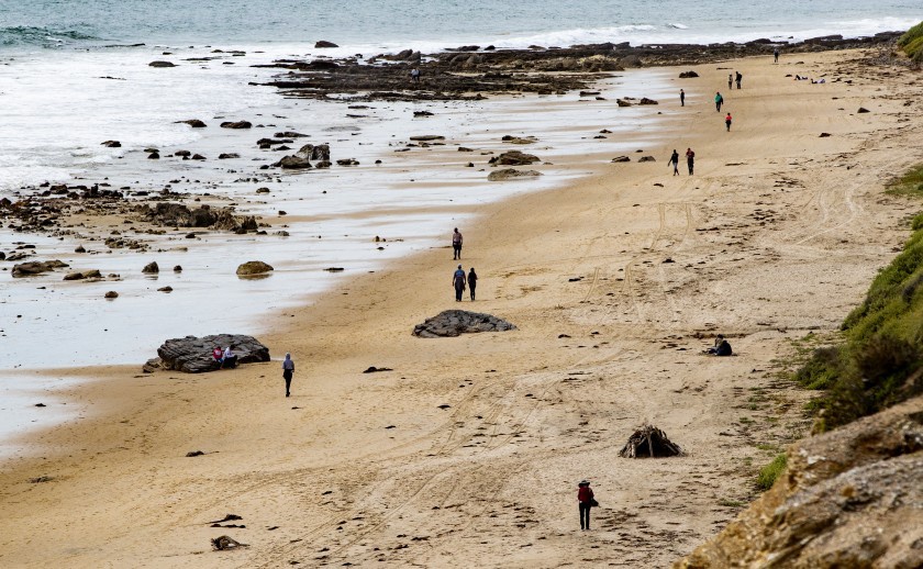 Bãi cát nơi "cá biển sâu kỳ lạ" được tìm thấy tại Mỹ ngày 7/5. Ảnh: LA Times.