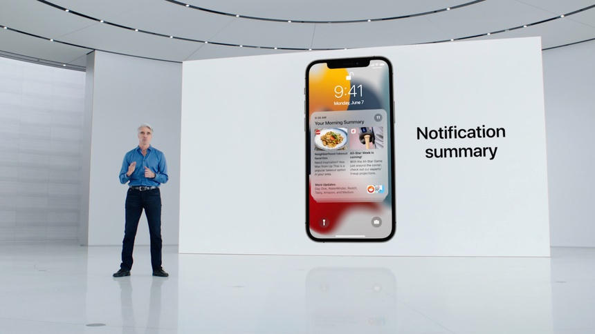 iOS 15 được xem là tâm điểm của sự kiện. Một trong những tính năng mới trên phiên bản này là Focus, điều chỉnh sự xuất hiện của thông báo dựa trên các hoạt động khác nhau (làm việc, học tập…). Người dùng có thể sắp xếp các trang màn hình dành cho từng chế độ, bên cạnh tính năng gửi tóm tắt các thông báo quan trọng theo khung giờ định sẵn.