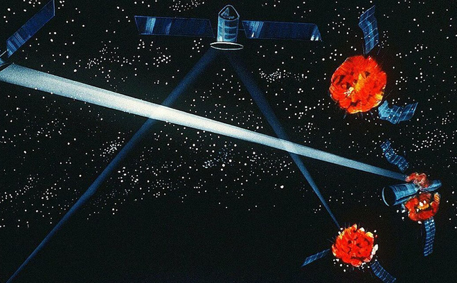 Mỹ cũng đã thử vũ khí năng lượng trên vũ trụ khi phóng một tia hạt phân tử trong 4 phút năm 1989 để tìm cách phát triển năng lực tên lửa chống tên lửa đạn đạo.