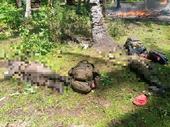 Thi thể của 2 quân nhân Philippines cùng quân trang tại hiện trường (Nguồn Twitter).