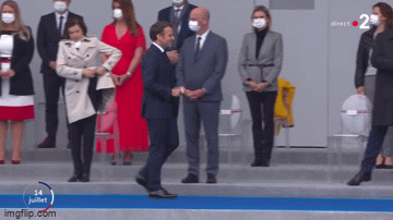 Tuy nhiên, tâm điểm chú ý trong sự kiện này lại chính là bà Brigitte Macron, Đệ nhất phu nhân Pháp. Bà Brigitte Macron đang trở thành chủ đề gây tranh cãi trên trên mạng xã hội khi bà không đeo khẩu trang, tỏ thái độ lạnh lùng không mấy mặn mà với người chồng kém tuổi.