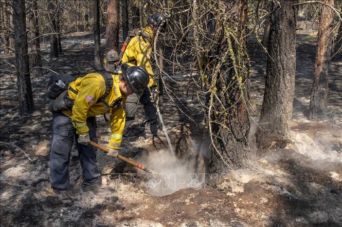 Lực lượng cứu hỏa nỗ lực dập lửa cháy rừng tại Bly, Oregon, Mỹ, ngày 17/7/2021. Ảnh: AFP/TTXVN