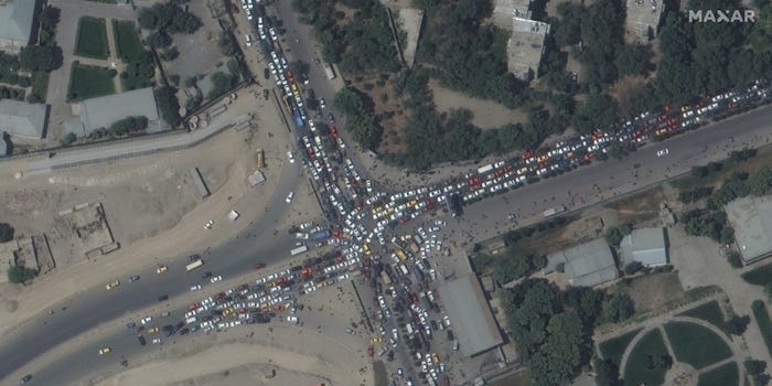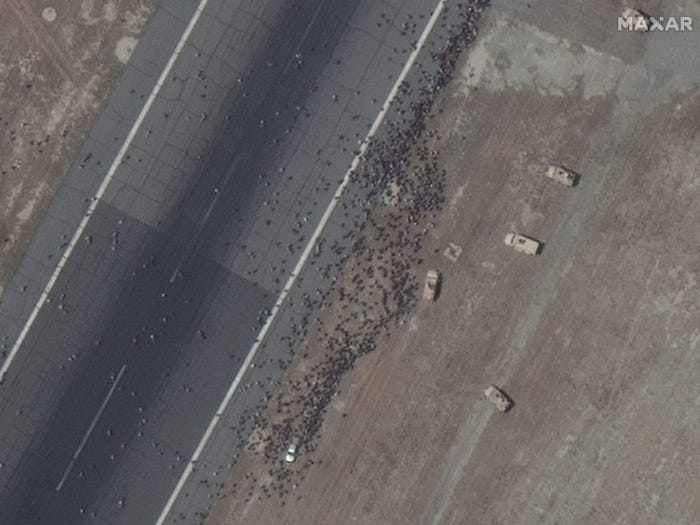 Ảnh từ vệ tinh đã chụp lại cảnh hỗn loạn tại Afghanistan. Theo đó, nhiều người đổ ùn về sân bay để tháo chạy khỏi nước này. Sự việc này diễn ra ngay sau khi Taliban lên cầm quyền và tuyên bố chiến tranh ở Afghanistan đã chấm dứt.