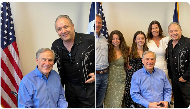 Abbott's personal Twitter account also notes that he met with Jimmie Vaughan, the brother of the late musician Stevie Ray Vaughan, on Tuesday before Abbott's confirmed diagnosis. Neither Abbott nor Vaughan was wearing a mask in the pictures.