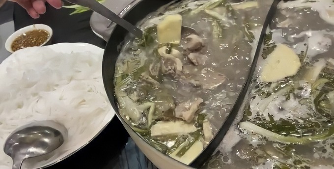 Đàm Thu Trang ăn vịt om sấu với rau muống. Khi ăn, nhúng rau vào nồi vịt om, lấy bún cho vào chén, chan đầy nước dùng ăn kèm rau. Còn thịt vịt chấm với mắm ớt gừng cay cay, the the là chuẩn.