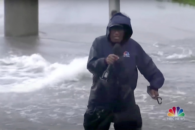 Al Roker đưa tin về bão Ida ở bang Louisiana (Ảnh: NBC).