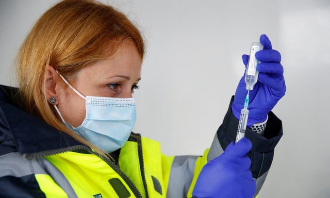 Nhân viên y tế chuẩn bị một liều vaccine Covid-19 tại Blackburn, Anh, hồi tháng 5. Ảnh: Reuters.