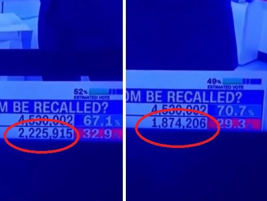 HÃY NHÌN KỸ: 351.000 phiếu bầu "Đồng ý bãi nhiệm" biến mất khỏi tổng số phiếu bãi nhiệm Newsom TRỰC TIẾP trên CNN