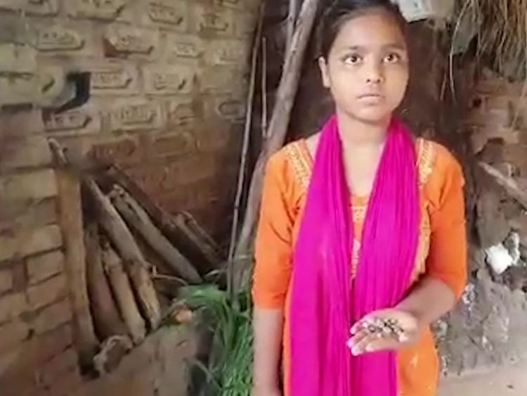 Trong một đoạn video ngắn được lan truyền trên mạng xã hội cách đây vài ngày, có thể thấy hốc mắt trái của cô bé này bị lồi lên. Sau khi được một người lấy tay xoa mắt, một viên đá nhỏ đã rơi xuống tà áo của Chandni. Một viên khác cũng xuất hiện và rơi xuống từ mắt phải của cô.
