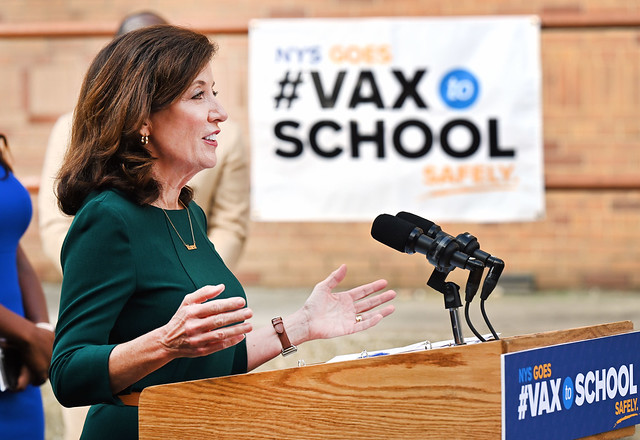Thống đốc Hochul cho biết tỷ lệ lây nhiễm COVID-19 đang có xu hướng giảm trong tiểu bang New York, nhưng biến thể Delta vẫn chưa chịu lùi bước, "đòi hỏi giới chức y tế bang phải đi trước".