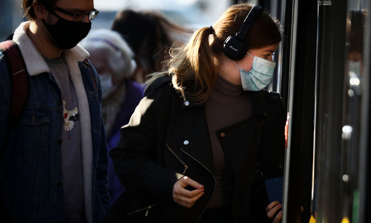 Một phụ nữ đeo khẩu trang khi sử dụng phương tiện giao thông công cộng tại Warsaw. Ba Lan đang chứng kiến số ca nhiễm tăng vọt. Ảnh: REX.