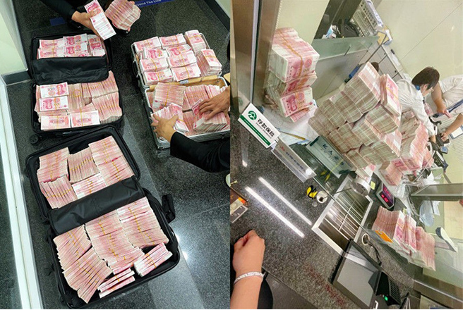 Hình ảnh về một triệu phú đến ngân hàng Thượng Hải với mục đích giao dịch tiền.