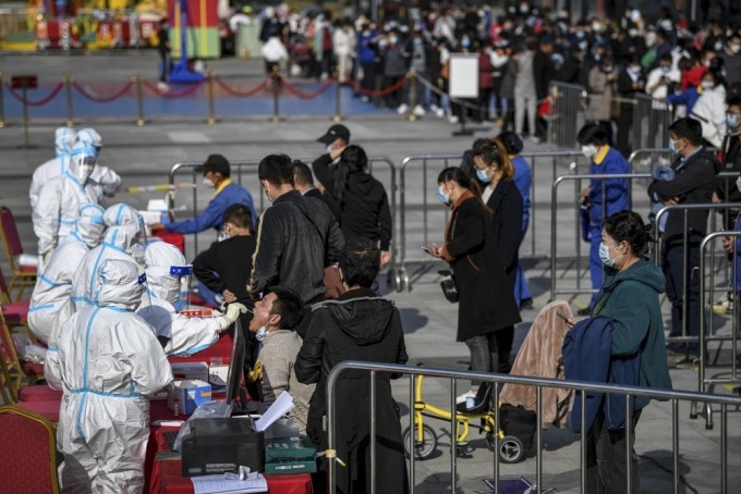 Người dân xếp hàng xét nghiệm nCoV tại huyện Ngân Xuyên, tỉnh Ninh Hạ, ngày 23/10. Ảnh: Xinhua