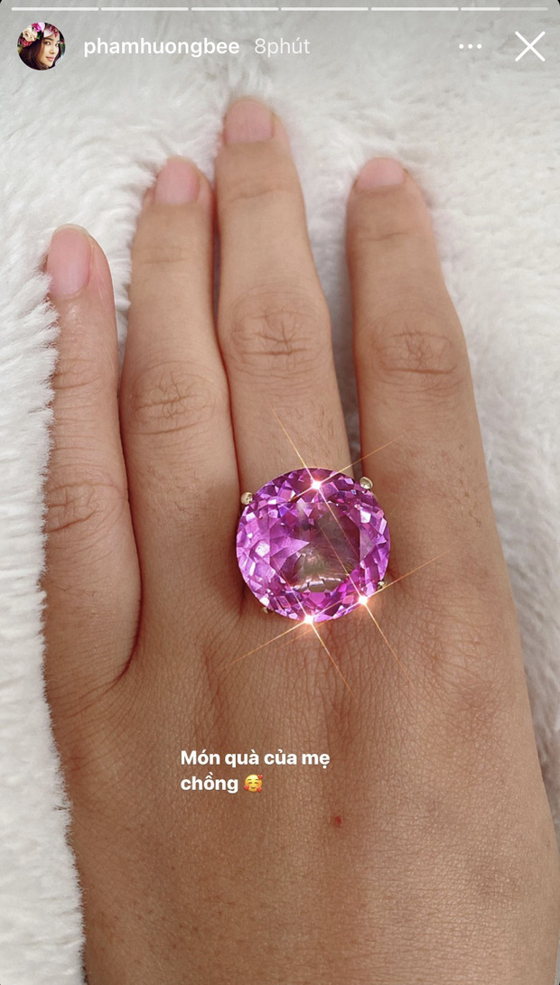 Dù đã trở thành mẹ bỉm 2 con, thế nhưng danh tính về chồng cũng như mối quan hệ với gia đình chồng luôn được Phạm Hương giữ kín. Thế nhưng, mới sáng đầu tuần (ngày 8/11) Phạm Hương vừa đăng tải trên Instagram bức ảnh khoe nhẹ chiếc nhẫn kim cương size "khổng lồ" nhìn muốn xỉu ngang kèm dòng trạng thái: "Món quà của mẹ chồng". Chỉ bao nhiêu đây thôi, có thể thấy được mối quan hệ vô cùng tốt đẹp giữa nàng Hậu và mẹ chồng khi làm dâu hào môn tại xứ sở cờ hoa.