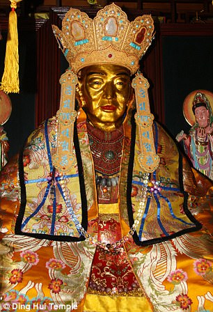 Xác ướp nhà sư đáng kính đã được đánh vecni trước khi mạ vàng tại chùa Dinghui.