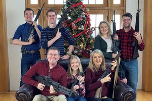 Hạ nghị sĩ Thomas Massie của bang Kentucky đăng ảnh đón mừng Giáng sinh của ông cùng gia đình bên những khẩu súng máy lên mạng xã hội Twitter hôm 4/12, Reuters đưa tin.