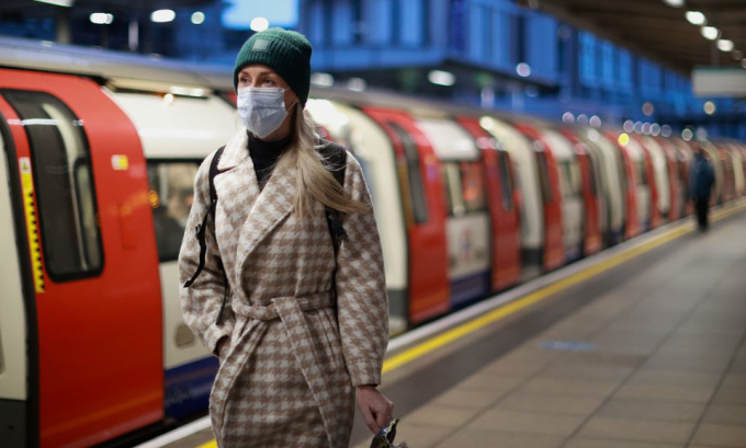 Một người đeo khẩu trang ở ga tàu điện ngầm tại London, Anh hôm 30/11. Ảnh: Reuters.