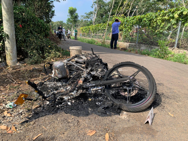 Nhận được tin báo, sáng cùng ngày cơ quan điều tra đã có mặt tại hiện trường, ghi nhận một chiếc xe máy đã bị thiêu rụi, một vài mảnh áo, một ít tóc người còn sót lại trong đống tro.