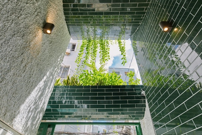 Căn nhà này là nơi sinh sống của 1 gia đình 5 thành viên. Các kiến trúc sư thiết kế căn nhà đặt ưu tiên về độ thoáng mát, sạch sẽ. Vì vậy, một ban công giật cấp được bố trí để có thể lấy được ánh sáng từ trên cao chiếu xuống phòng.