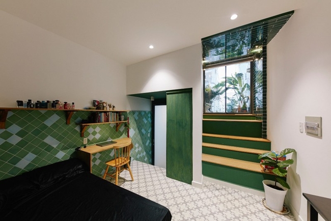 Được biết, hai tầng trên cùng của ngôi nhà được sử dụng để cho thuê. Nhờ việc đặt cầu thang ngay ở mặt tiền, các khách thuê có thể lên thẳng phòng của mình mà không làm ảnh hưởng đến sự riêng tư của chủ nhà.