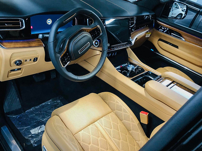 Bên trong xe là không gian nội thất về cơ bản là giống nhau. Cả hai mẫu xe này đều được trang bị mặt táp-lô hình đôi cánh, cụm điều khiển trung tâm rộng, núm xoay chọn số bằng nhôm và vô lăng 2 chấu. Nếu như Jeep Wagoneer 2022 được bọc da Nappa thì Grand Wagoneer lại dùng da Palermo khâu quả trám.