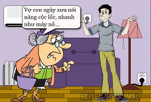 - Dạ… dạ… hồi đó nhà con còn trực ở tổng đài trả lời miễn phí, nên có bị nhiễm đôi chút bất nhã, mẹ bỏ quá cho.