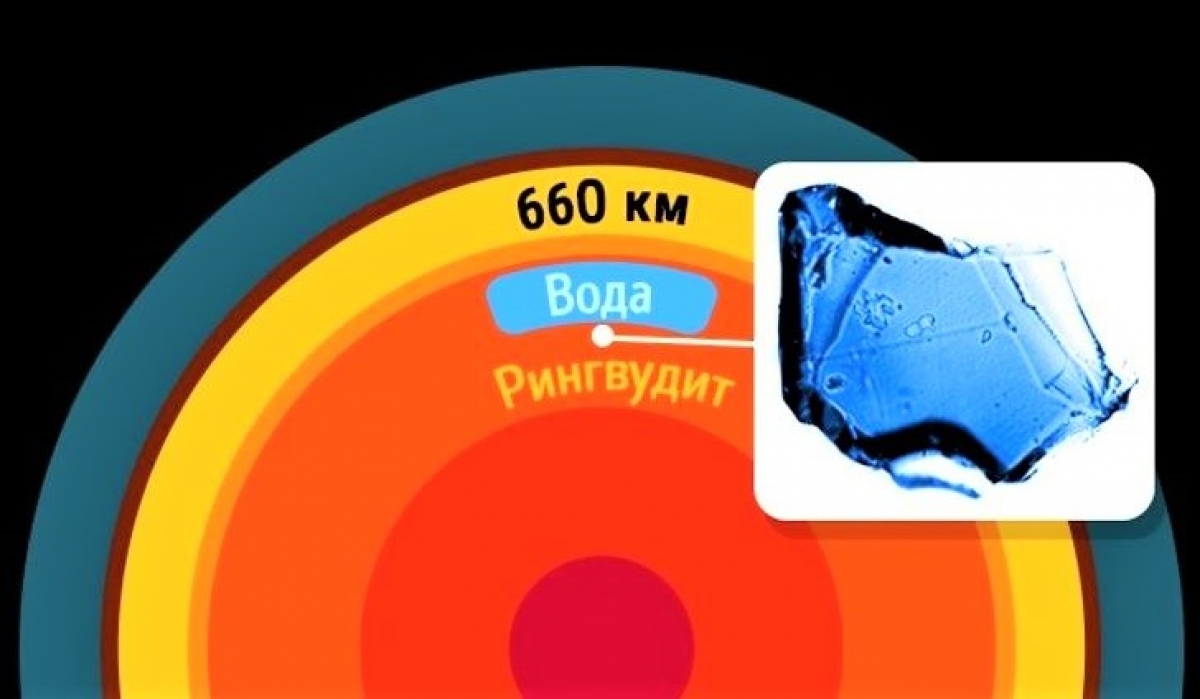 Đại dương ngầm. Các nhà khoa học đã phát hiện ra một hồ chứa nước khổng lồ có niên đại 2,7 tỷ năm tuổi ở độ sâu 410-660 km dưới bề mặt Trái Đất. Chất lỏng này được tìm thấy nhờ vào đá ringwoodit có trong lớp phủ của Trái Đất. Nước chịu áp lực cực lớn, và số lượng của nó đủ để lấp đầy tất cả các đại dương trên Trái Đất 3 lần. Từ khám phá này, có giả thuyết cho rằng các đại dương trên Trái Đất hình thành từ sự bùng nổ của đại dương ngầm./.