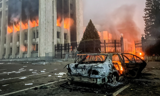 Các cuộc biểu tình phản đối giá khí hóa lỏng (LPG) tăng cao nổ ra ngày 2/1 và leo thang thành bạo động khi người biểu tình đốt xe cảnh sát, xông vào các tòa nhà chính phủ, phóng hỏa dinh tổng thống và chiếm sân bay ở thành phố Almaty. Lực lượng chức năng Kazakhstan sau đó giành lại được quyền kiểm soát sân bay Almaty.