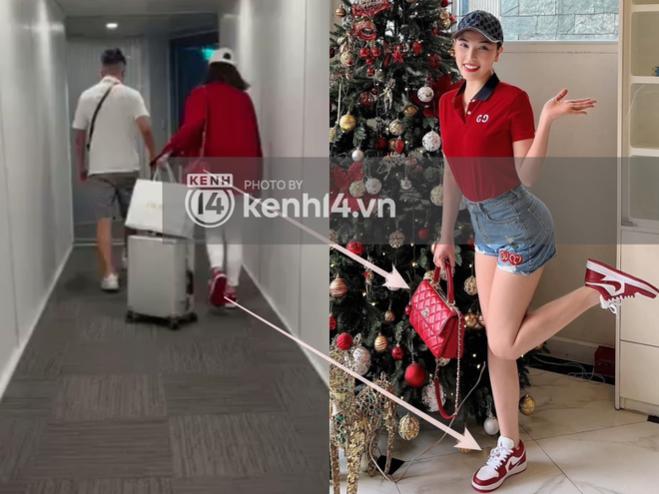 Người bên thiếu gia Nghiêm Đức đội nón và đeo khẩu trang kín. Tuy nhiên lại lộ túi hiệu và giày giống với Quỳnh Thư từng khoe cách đó mấy hôm