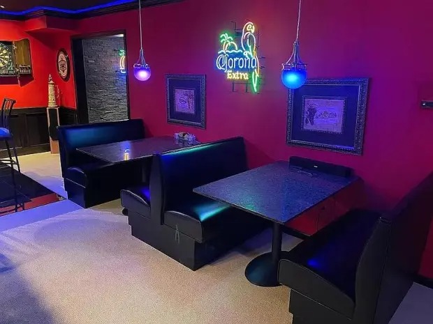 Tầng hầm của ngôi nhà cấp 4 ẩn chứa cả một quán bar cực kỳ hoành tráng. Nơi đây có đầy đủ những ǵ các "tâm hồn tiệc tùng" cần từ dàn karaoke, sàn nhảy, cột múa, bàn bi-a, quầy bar, kho rượu ngon,... vô cùng xịn x̣. Nh́n những h́nh ảnh này, cư dân mạng đặt cho nó biệt danh "câu lạc bộ hot nhất ở Indiana".