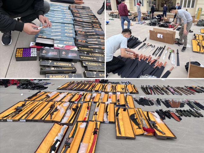 Cảnh sát triệt phá đường dây mua bán công khai gần 3.000 vũ khí thô sơ các loại như dao, kiếm, bình xịt hơi cay, dùi cui điện...