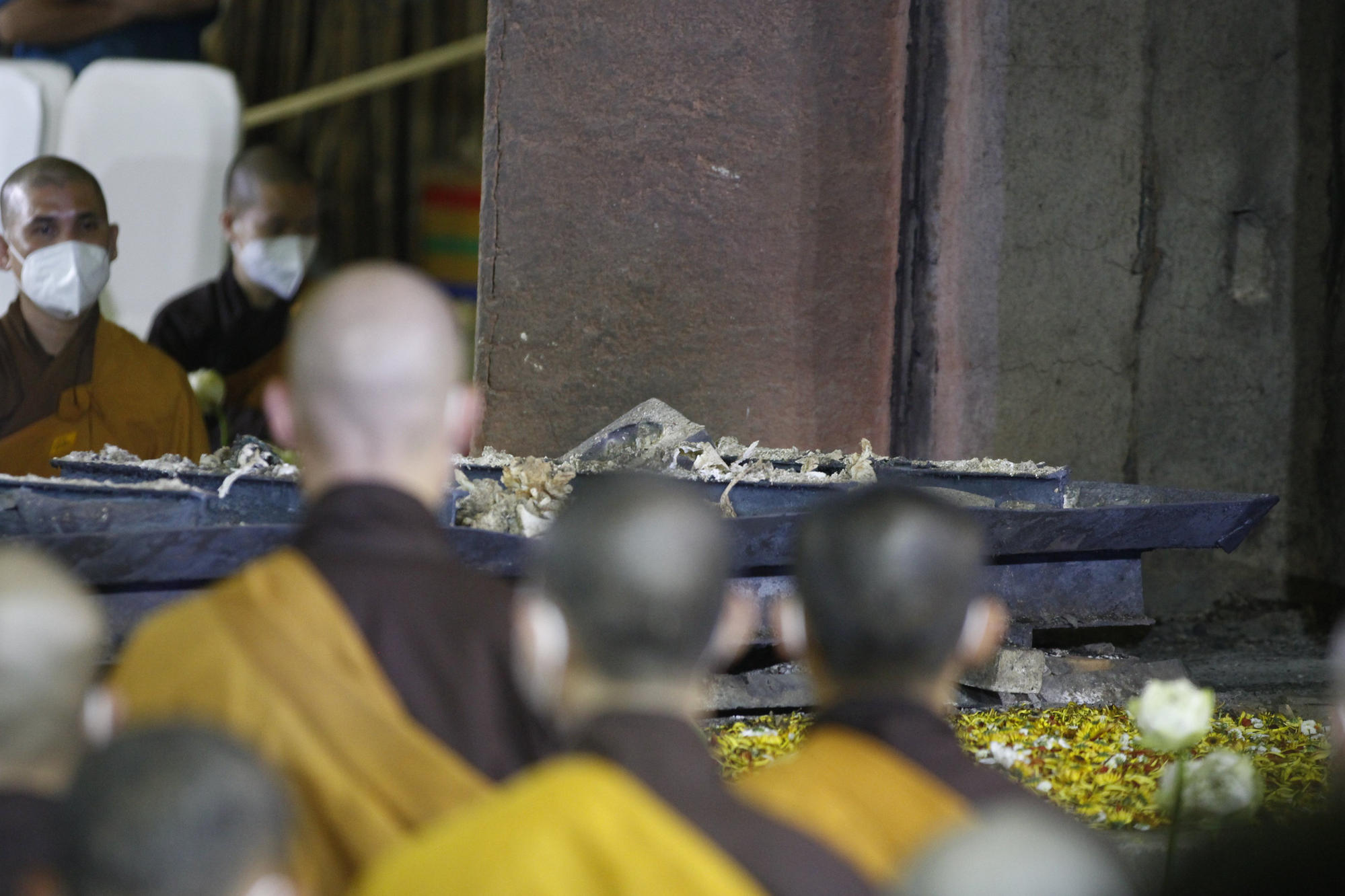 Sau khi thực hiện lễ Trà tỳ Thiền sư Thích Nhất Hạnh tại Công viên vĩnh hằng - Vườn Địa Đàng (phường Thủy Bằng, TP.Huế) vào ngày 29/1, nhiều tăng ni phật tử đã cùng ở lại đây thực hiện nhiều nghi thức trong ngày tâm tang cuối cùng.