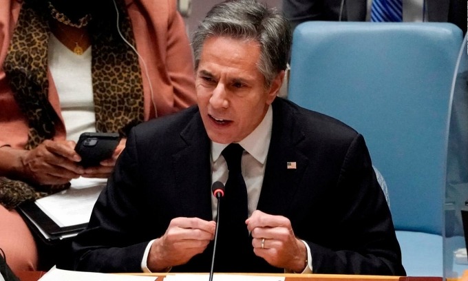 Ngoại trưởng Mỹ Antony Blinken phát biểu ngày 17/2 tại Hội đồng Bảo an Liên Hợp Quốc. Ảnh: AP.