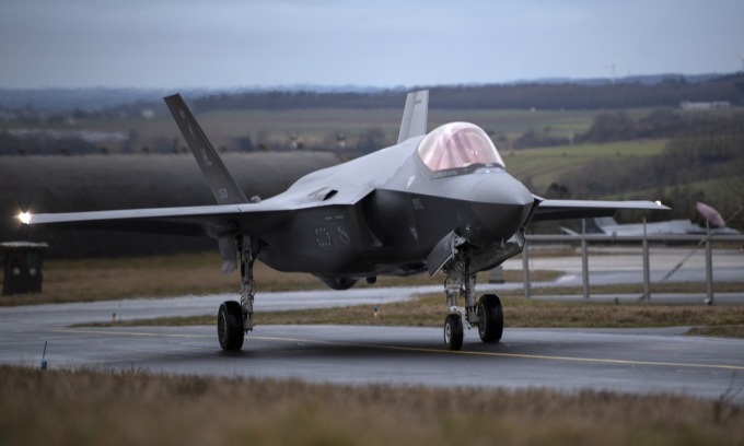 Tiêm kích F-35A Mỹ hạ cánh tại Đức hôm 16/2. Ảnh: USAF.