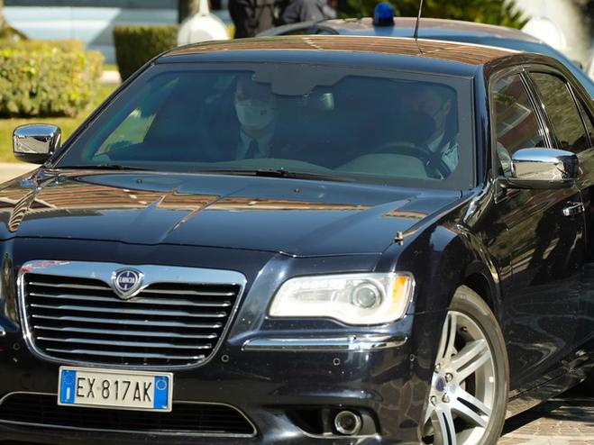 Xe chở thành viên phái đoàn Trung Quốc rời khách sạn ở Rome hôm 14/3. Ảnh: AP.