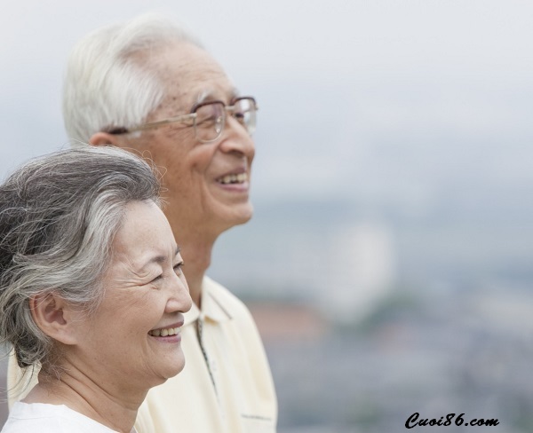 Hai vợ chồng lớn tuổi ghé vào ăn tại một quán ven đường.