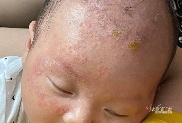 Bé trai 4 tháng tuổi (Hà Nội) mắc Covid-19 được khoảng 1 tuần thì đột ngột xuất hiện rất nhiều mụn nước trên da, da khô, đóng vẩy nặng nề.
