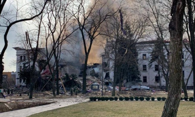 Hội đồng thành phố Mariupol hôm 16/3 cáo buộc máy bay quân sự Nga "cố tình" nhắm vào Nhà hát Kịch, khẳng định tòa nhà là nơi trú ẩn của hàng trăm cư dân thành phố. Lực lượng cứu hộ tìm cách dọn dẹp đống đổ nát suốt ngày 17/3. Petro Andrushchenko, cố vấn thị trưởng Mariupol, cho biết giới chức chưa xác định được con số thương vong, nhưng thêm rằng hầm trú ẩn bên dưới tòa nhà không bị phá hủy.