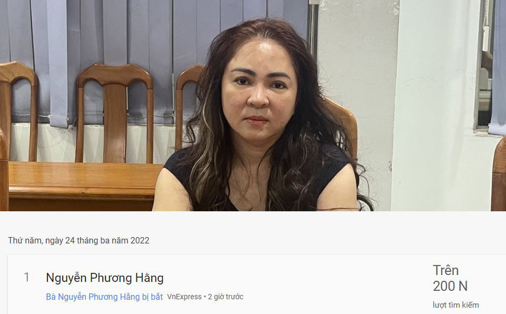 Tên của bà Nguyễn Phương Hằng bỗng chốc trở thành từ khóa được tìm kiếm nhiều nhất trên công cụ tìm kiếm Google ngày 24/3.