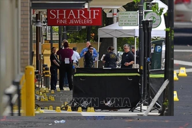 Cảnh sát điều tra tại hiện trường vụ xả súng ở thành phố Sacramento, bang California, Mỹ ngày 3/4/2022. Ảnh: The Mercury Times/TTXVN