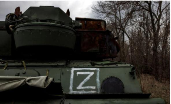 Một khí tài của Nga bị phá hủy trên chiến trường Ukraine có ký hiệu "Z". Ảnh: Reuters.
