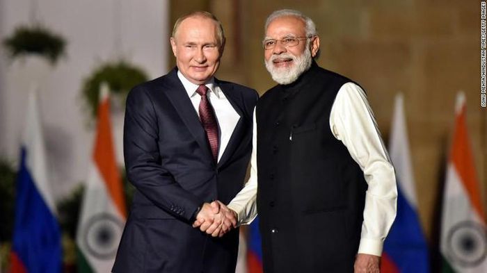 Tổng thống Nga Vladimir Putin (trái) và Thủ tướng Ấn Độ Narendra Modi. Ảnh: CNN